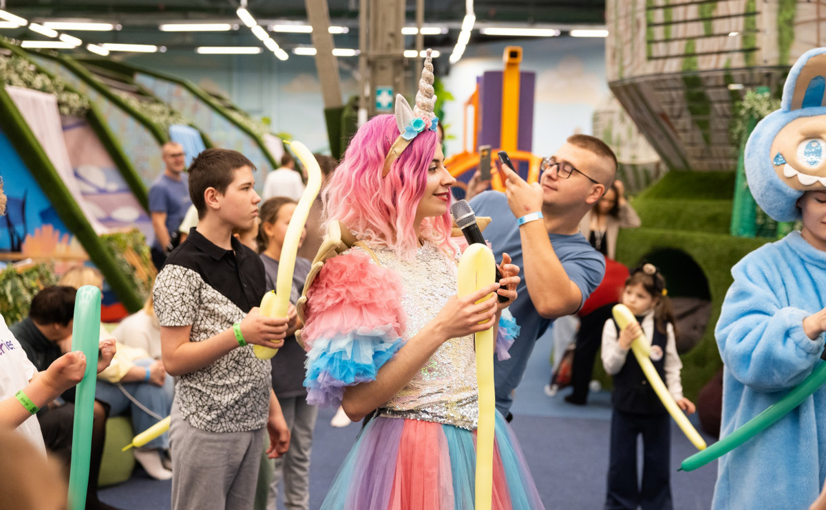 Гости праздника поучаствовали в анимационной программе, потанцевали и научились создавать фигурки из воздушных шаров на мастер-классе.