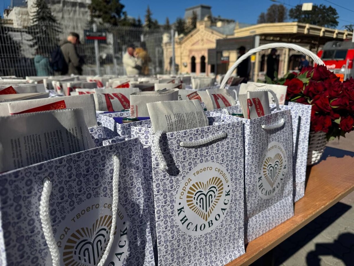 Кстати, туристов, прибывших в Кисловодск сегодня на поезде, встречали на железнодорожном вокзале с брендированными подарками. Так, пассажиров поезда «Санкт-Петербург — Кисловодск» угостили нарзаном, вручили им цветы, курортную газету и фирменные сувениры.