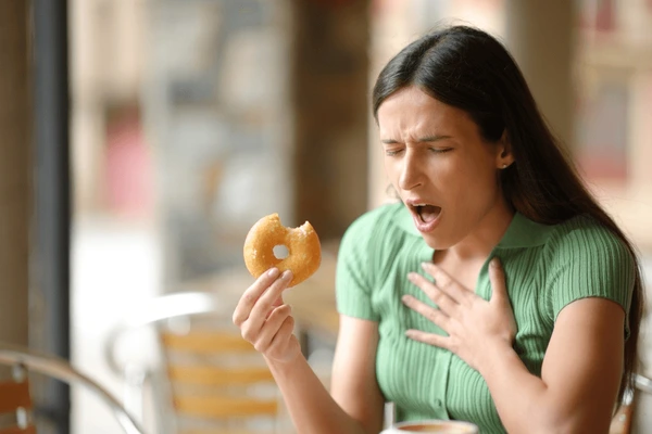 Когда кусочек пищи, косточка, семечко или другой инородный предмет попадают в гортань, они могут частично или полностью перекрыть поток воздуха. В результате человек начинает задыхаться и кашлять, пытаясь вытолкнуть предмет наружу. Если вовремя не оказать помощь, существует серьезный риск удушья. В некоторых случаях кусочек пищи может пройти в трахею и опуститься ниже, застревая в бронхах.