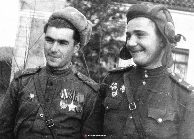 Боевые друзья — гвардии лейтенант Александр Космодемьянский и старшина Александр Вяткин, 1945 год 17 июля 1944 года старшина Александр Ильич Вяткин (21.09.1921 - 31.04.1990 гг.) со своим расчетом одним из первых переправился через Неман к югу от Каунаса. В течение шести дней он отражал многочисленные вражеские контратаки, уничтожил 2 танка, 3 бронемашины, а также большое количество солдат и офицеров противника. Указом Президиума Верховного Совета СССР от 24 марта 1945 года за мужество и героизм, проявленные в борьбе с немецкими захватчиками Александр Вяткин был удостоен звания Героя Советского Союза. ⭐️ Календарь Победы