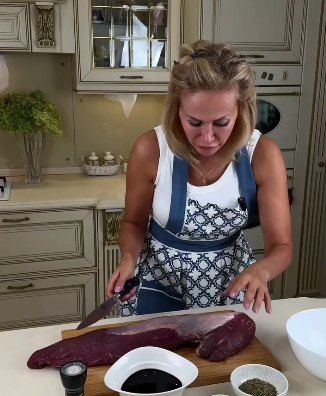 Ингредиенты: Способ приготовления: Вырезку очищаем от жилок и обрезаем тонкие края с обеих сторон. В глубокую миску кладём вырезку, добавляем прованские травы, перец, оливковое масло. Все втираем. Заливаем соевым соусом и отправляем на пару часов в холодильник, переворачиваем каждые 20 минут, чтобы все пропиталось. В разогретую сковороду, добавляем немного масла для обжарки. Со всех сторон, обжариваем на сильном огне вырезку, до золотистой корочки. Разогреваем духовку до 190°. Обжаренную вырезку выкладываем на фольгу, поливаем небольшим количеством маринада, в котором мариновалась вырезка, плотно заворачиваем в фольгу, кладем на противень и отправляем в духовку на 18 мин. Достаем ростбиф из духовки, раскрываем фольгу и даем 5 минут отдохнуть. Нарезаем толстыми кусочками, выкладываем на тарелку, поливаем соком, который остался в фольге, ничем не украшаем, ростбиф и так прекрасен! Степень приготовления регулируйте, как вы любите! Этот вариант - классический! Если хотите более прожаристы