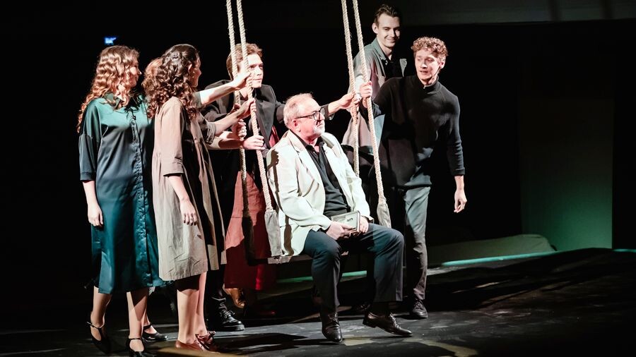 Зрители вечера не торопились в зал — внимание привлекала выставка в фойе. Каждому спектаклю, а Эфрос поставил их четырнадцать на сцене нынешнего РАМТа, посвящался отдельный стенд с описаниями, цитатами, фотографиями. Получилось путешествие по прекрасному времени, которое мое поколение не застало. Так что узнала немало нового.