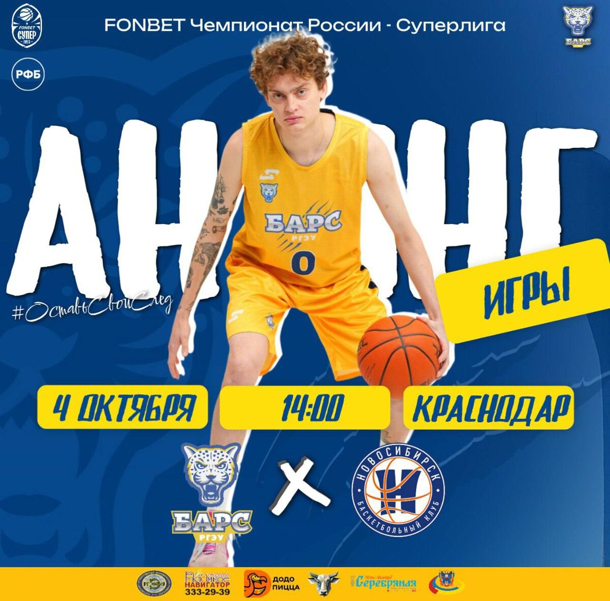 Сегодня состоится второй матч Чемпионата России по баскетболу среди мужских команд Суперлиги сезона 2025/2026! 🏀 На площадке встретятся БАРС-РГЭУ и БК «Новосибирск» (г. Новосибирск) в 14:00. Прямая трансляция по ссылке