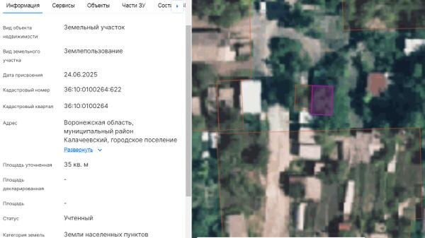 Название: Земельный участок с кадастровым номером 36:10:0100264:622 площадь 35 по адресу Воронежская область, муниципальный район