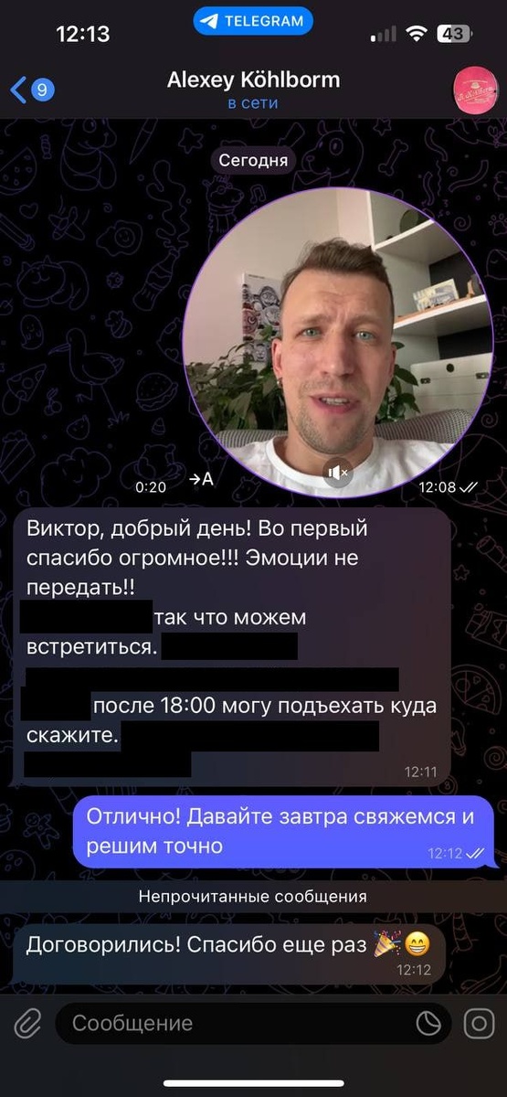 Первые впечатления по итогам розыгрыша в Телеграме, когда Виктор написал победителю - Алексею