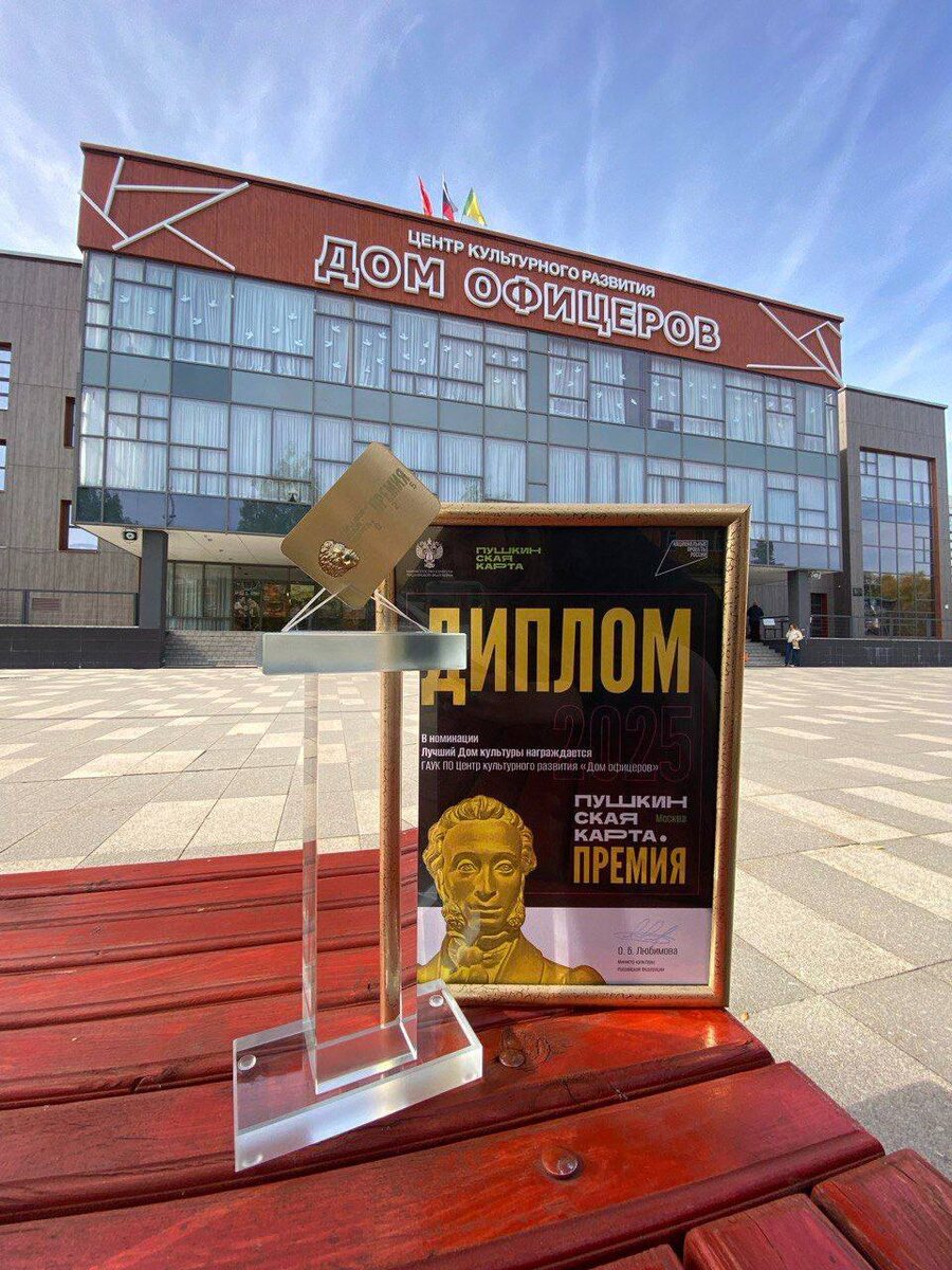 Центр культурного развития «Дом офицеров» второй год подряд получил престижную премию Министерства культуры Российской Федерации за вклад в развитие программы «Пушкинская карта». Торжественная церемония награждения победителей состоялась в Бетховенском зале Большого театра.