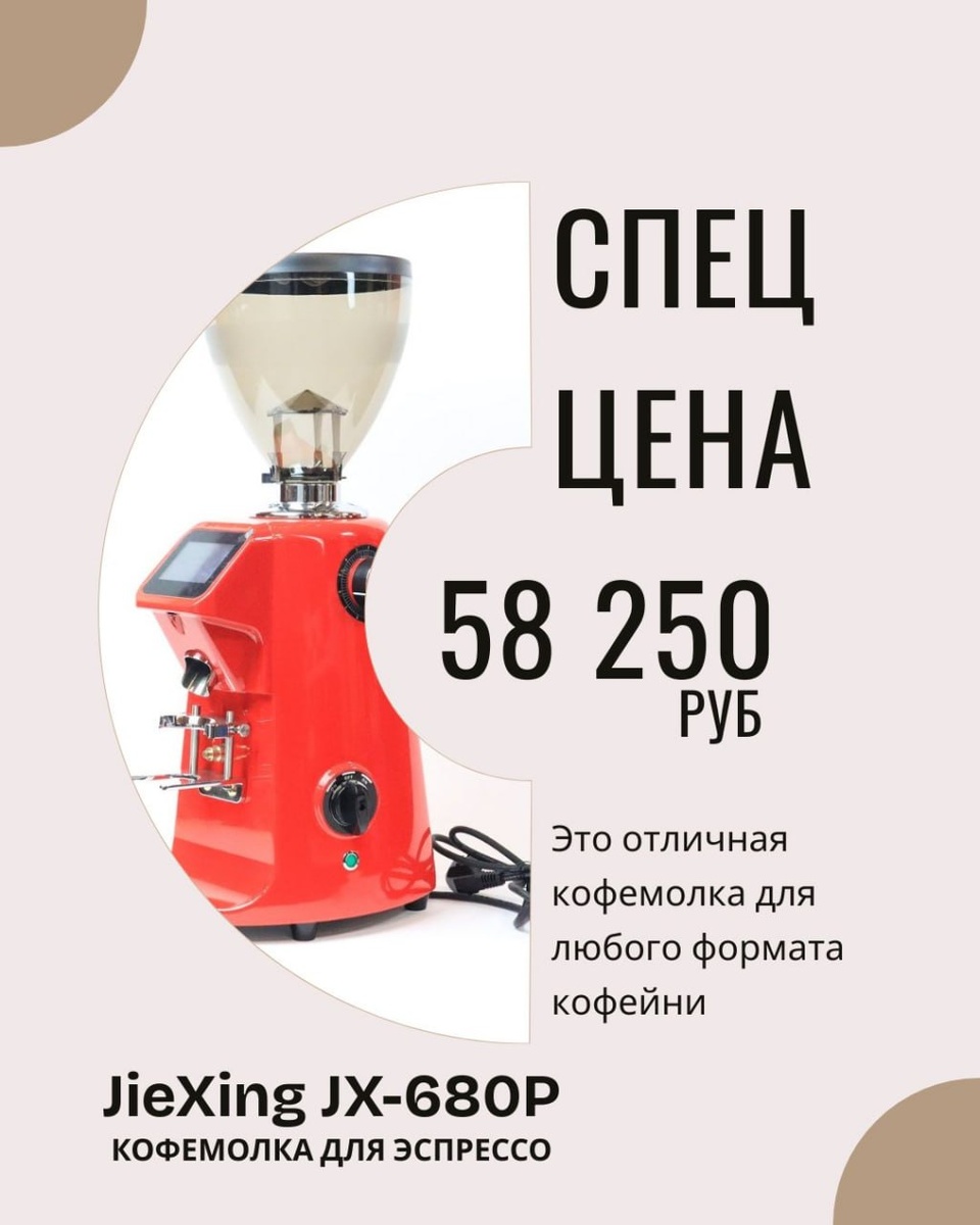 🔥 Осеннее предложение от Территории Кофе! До 31 октября действует специальная цена на профессиональную кофемолку JieXing JX-680P — всего 58 250 ₽ вместо обычной цены 83 215 ₽! ☕️ 👍Мы лично тестировали эти кофемолки в нашем кофебаре — они показали себя с лучшей стороны: ⚙️ мощность 450 Вт ⚙️ плоские стальные жернова 83 мм — стабильный, равномерный помол ⚙️ микрометрическая настройка помола ⚙️ высокая точность и надёжность в работе Это отличная кофемолка для любого формата кофейни — от to-go точки до профессионального бара. Не упусти момент — предложение действует только до конца октября! 📍 Приходи в магазин «Территория Кофе», посмотри кофемолку вживую и забери свою по суперцене! Наш адрес г. Москва, ул. Правды 17/19, время работы с 10-21.00 без выходных Не можешь прийти закажи онлайн по ссылке »»»