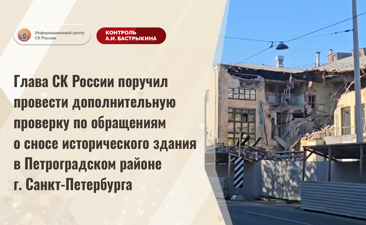Глава СК России поручил провести дополнительную проверку по обращениям о сносе исторического здания в Петроградском районе