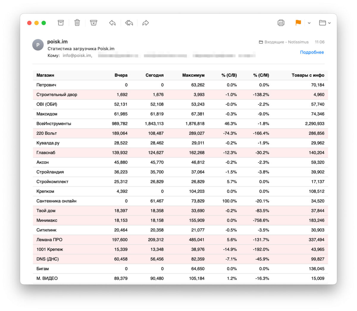Самая лучший dashboard - письмо на почту. Мы пробовали Grafana, Kibana и т.п. - но дольше всех живет обычное суточное письмо с выжимкой о статусе сервисов. Вот, утром пришло по итогам парсинга сайтов для проекта poisk.im - сразу видно, что и где сломалось (Петрович уже пару дней не парсится). Скоро будет под 100 магазинов, которые мы парсим для этого проекта ежедневно, но поддержа начинает сильно рости тоже. Если кто-то хочет с нами зарабатывать - велком. С вам фид Яндекс.Маркет крупных магазинов, а мы продаем и делимся с вами %. Например, КОМУС или ПЯТЕРОЧКА - парсите Москву, даете нам ссылку на фид с данными, а мы продаем и делим бабульки. Я не шучу :) Русский ИТ бизнес