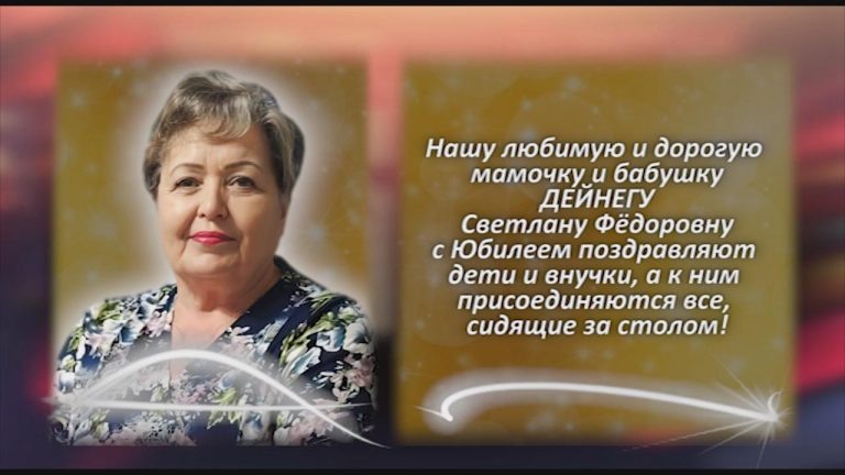 Нашу любимую и дорогую мамочку и бабушку ДЕЙНЕГУ Светлану Фёдоровну с Юбилеем поздравляют дети и внучки, а к ним присоединяются все, сидящие за столом!