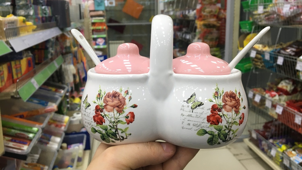 Всем огромный привет! Сегодня у меня для вас обзор из магазина Фикс Прайс. В продаже интересный ассортимент, особенно мне приглянулись вот эти баночки для сахара и соли. Банка двойная, в комплекте с ложечками. Изготовлена из керамики, имеется красивый декор. Производитель Китай. Цена 349 рублей.