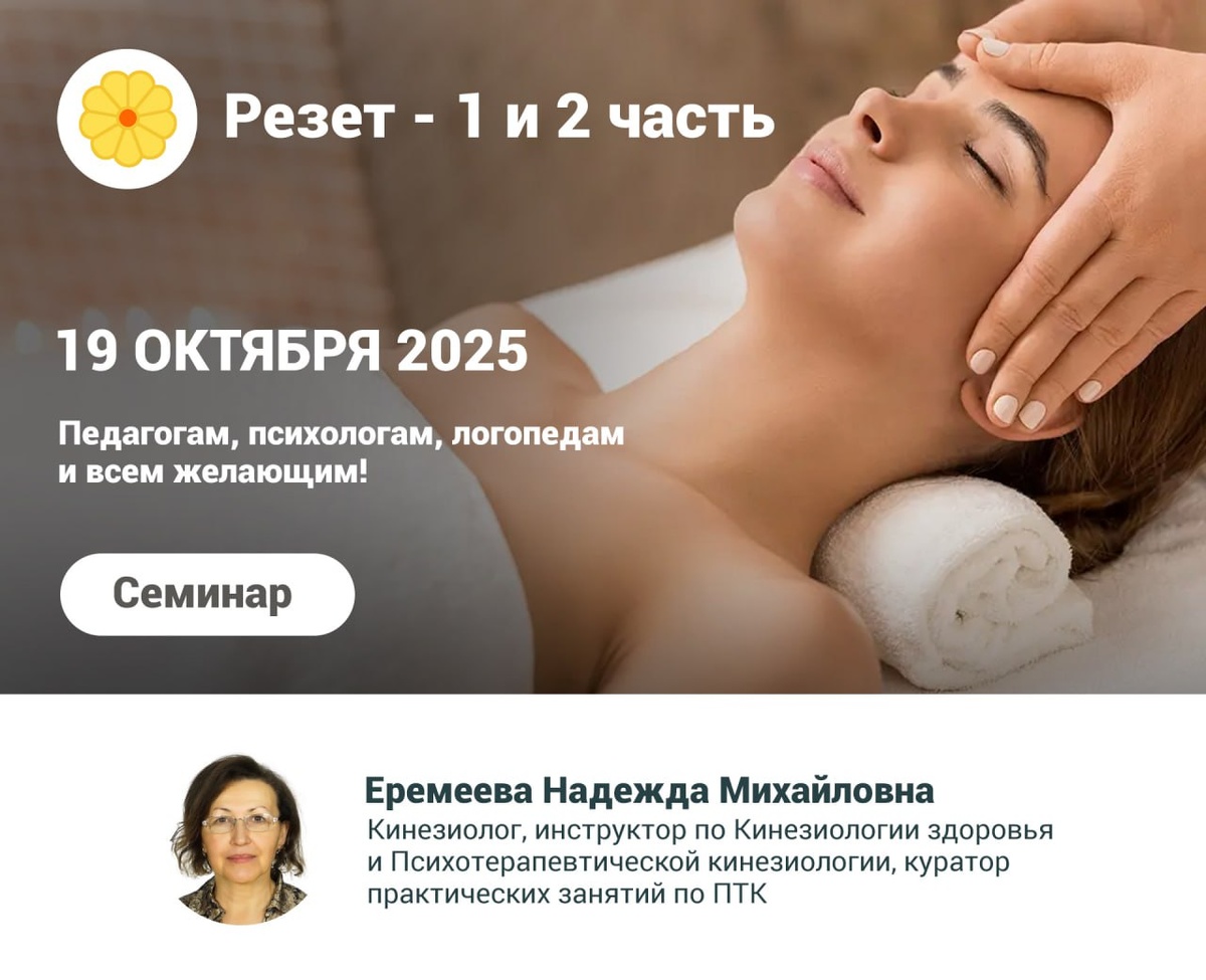 Семинар проведет Еремеева Надежда Михайловна — кинезиолог, инструктор по Кинезиологии здоровья и Психотерапевтической кинезиологии, куратор практических занятий по Психотерапевтической кинезиологии.