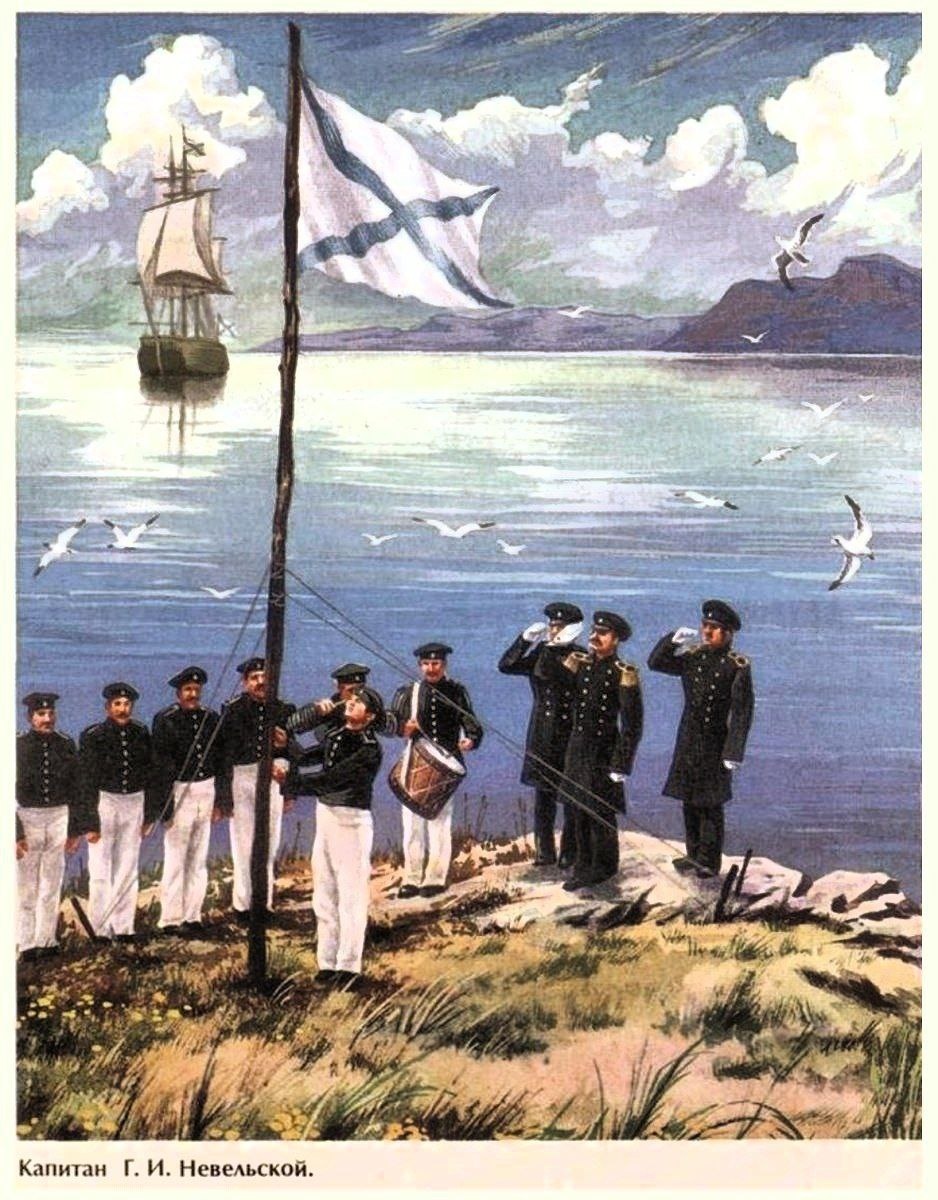 4 октября 1853 года капитан 1-го ранга Геннадий Иванович Невельской, командир корабля «Николай I», поднял флаг Российской империи над