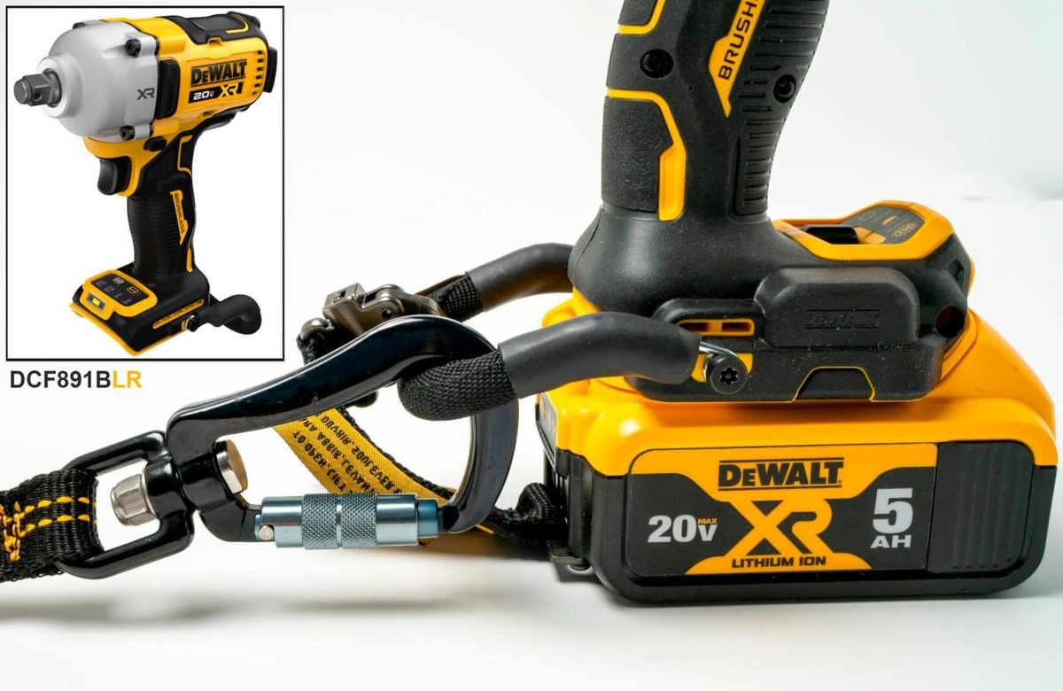 DeWALT собирается выпустить популярные модели аккумуляторного инструмента с фирменным страховочным креплением LANYARD READY™ в комплекте, предназначенным для работы на высоте. Например, недавно анонсировали модель гайковерта DeWALT DCF891BLR 20V, где буквы LR в конце указывают на наличие крепления LANYARD READY.