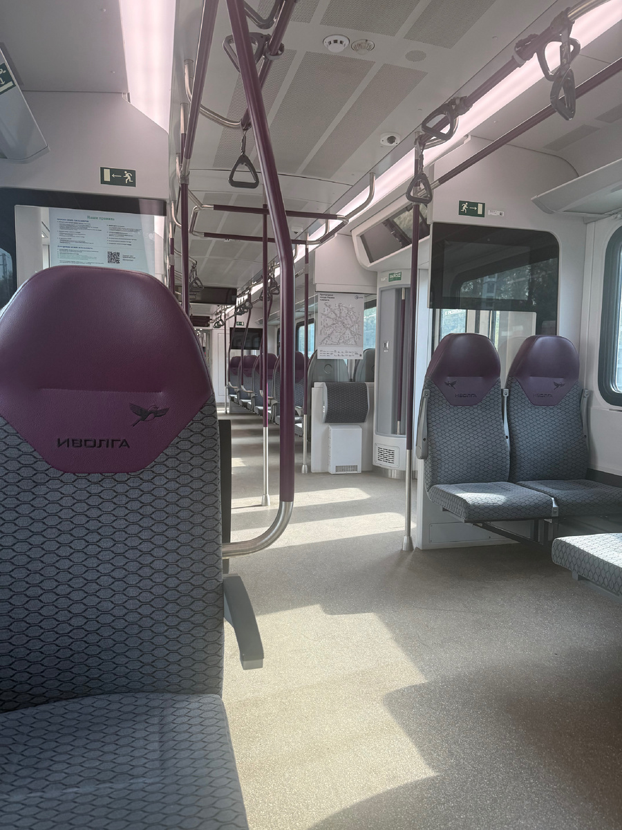 В вестибюле много указателей, навигация проста и понятна. Есть туалеты. Бесплатные. Только поднялась на платформу как подъехала электричка. Они здесь ходят с интервалом в 10 минут. Новая современная Иволга. Из минусов - сиденья, расположенные друг напротив друга, но повторюсь, что сегодня выходной день, вагоны полупустые, потому это не напрягало.