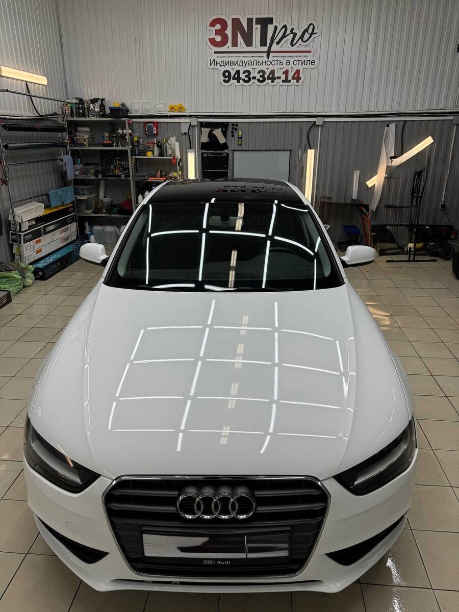 Эффектный апгрейд за день: Audi A4 с роскошной черной крышей! Сегодня в работе — элегантная Audi A4. Мы провели работу, которая кардинально преображает внешность автомобиля: оклейка крыши в черную гибридную пленку с эффектом рояльного лака. Что мы сделали: ✅ Оклейка крыши черной гибридной пленкой. ✅ Идеальный глянец, повторяющий глубину и блеск рояльного лака. ✅ Надежная защита лакокрасочного покрытия от сколов, царапин и выцветания. Почему это так популярно? Эта услуга — один из самых доступных и быстрых способов придать автомобилю индивидуальность и статусный вид. Черная крыша не просто защищает, а создает иллюзию панорамного стекла, добавляя облику Audi A4 стремительности и солидности. Результат: Автомобиль выглядит дороже и стильнее, сохраняя при этом заводское ЛКП под надежной защитой. --- Хотите такой же эффектный апгрейд для своего авто? 📞 Звоните и записывайтесь: 8 (921) 943-34-14 📍 Наши студии в Санкт-Петербурге: · СПб, Софийская ул., д. 8, к. 1 · СПб, наб. Обводног