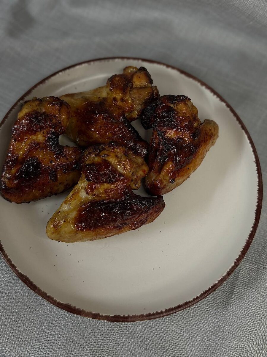 Отрезаем на куриных крылья фаланги. Солим,перчим. Добавляем сладкий соус Чили и соевый соус. Маринуем минут 15. Складываем в чашу аэрогриля наши маринованные куриные крылья. Отправляем запекаться при температуре 180 градусов 30-35 минут. ( Или в хорошо разогретую духовку на 30-35 минут при температуре 180 градусов.) Готово ✔️