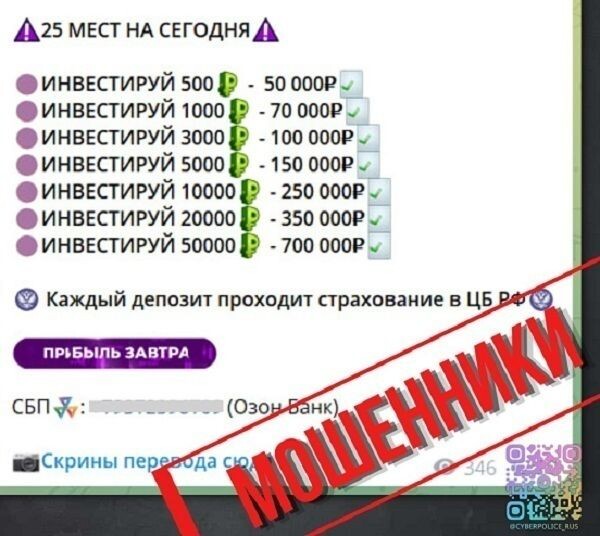 В Управлении по организации борьбы с противоправным использованием информационно-коммуникационных технологий (УБК) МВД России. рассказали, как не попасться на удочку мошенников в сфере инвестиций. «Читая про миллионеров, легко поверить, что инвестиции – это «волшебная кнопка». Но вот если в полицейских сводках поискать по слову «успех», там окажутся тысячи дел о мошенничестве в сфере инвестиций», – говорится в сообщении, размещённом в телеграм-канале УБК. Сотрудники управления предложили запомнить, как выглядит обман. Невероятная доходность. До 1400 процентов – так не бывает. Это главный признак обмана. Ложь о страховании. ЦБ РФ не страхует частные инвестиции. Страхуются только вклады в официальных банках. Перевод физлицу. Расчёты через СБП на карту частного лица – верный способ потерять деньги. Напомним, что в России с началом осеннего призыва участились звонки от телефонных мошенников, которые представляются сотрудниками военкоматов.