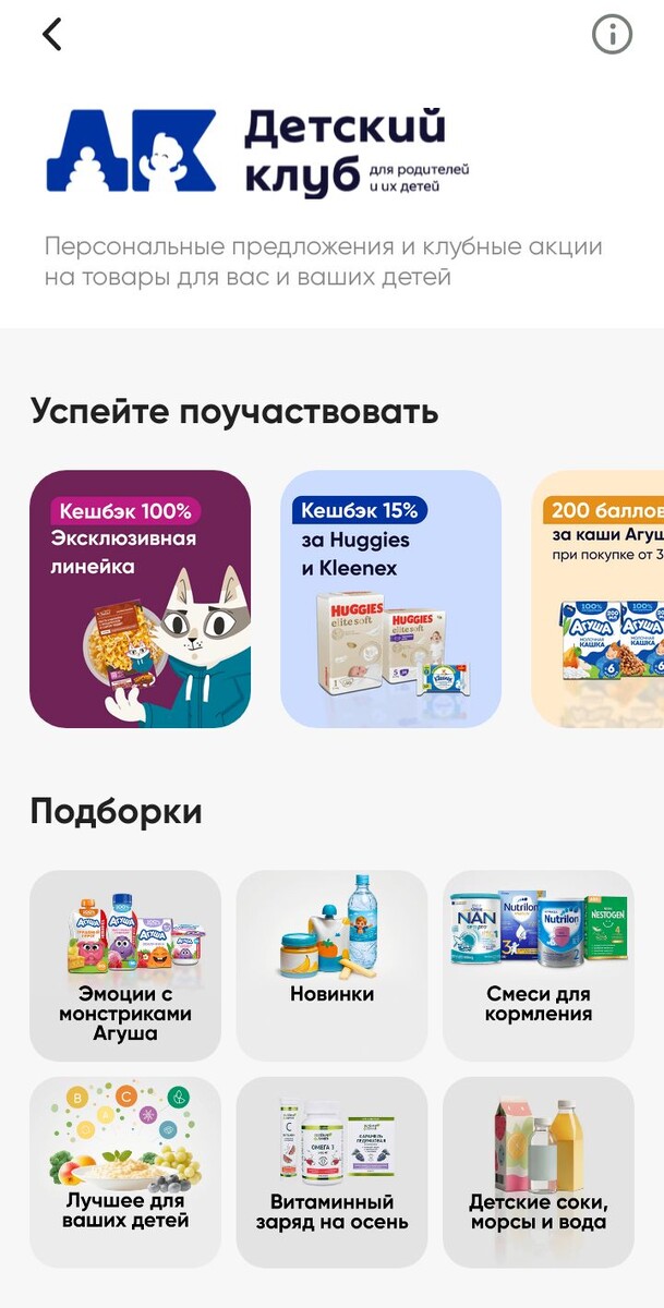 Вступаем в Детский клуб и там видим предложение.