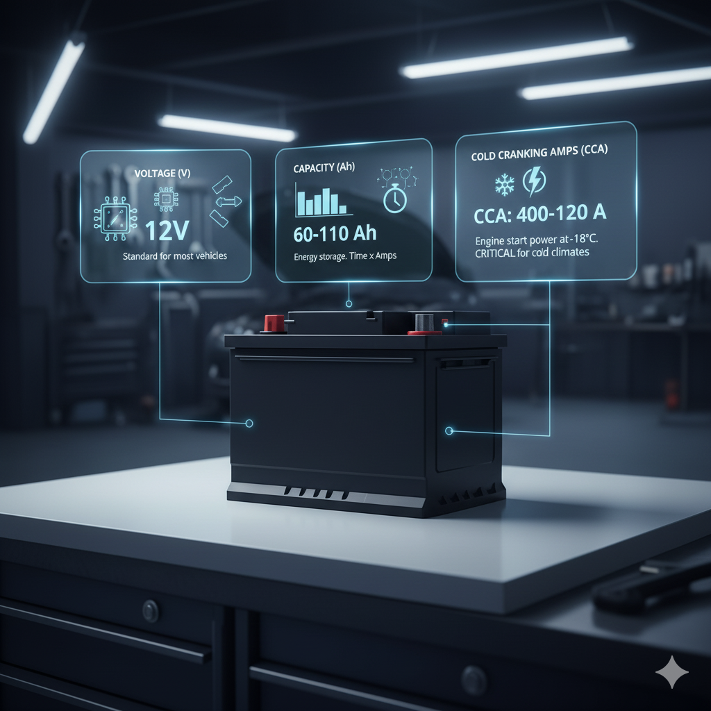 Роль электролита и свинцовых пластин Электролит служит средой для переноса ионов между пластинами. Без него химические реакции, генерирующие электричество, были бы невозможны. Свинцовые пластины, благодаря своей пористой структуре, имеют большую площадь поверхности, что увеличивает количество активного материала, доступного для реакции, и, соответственно, повышает мощность аккумулятора. Понятия напряжения (вольт) и емкости (ампер-час) Что такое ток холодного пуска (CCA) и почему он важен Одним из важнейших параметров автомобильного аккумулятора является ток холодного пуска (CCA - Cold Cranking Amps). Этот показатель указывает на максимальный ток, который полностью заряженный аккумулятор может выдать при температуре -18°C (0°F) в течение 30 секунд, при этом напряжение на клеммах не должно опускаться ниже 7,2 В. Почему это так важно? Высокое значение CCA гарантирует, что аккумулятор сможет обеспечить достаточную мощность для надежного запуска двигателя даже в сильные морозы. Именно поэто