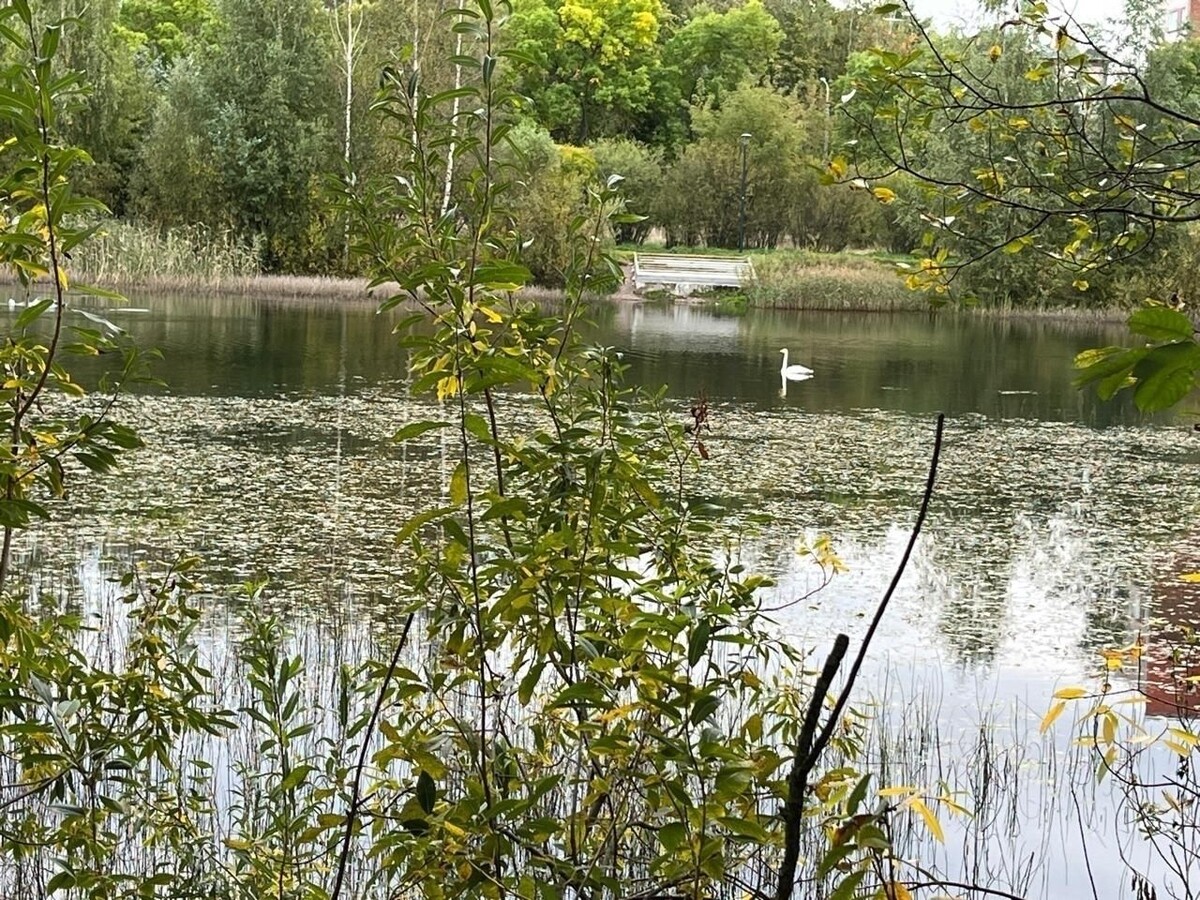 В Петербурге на Ольгинском пруду появился лебедь