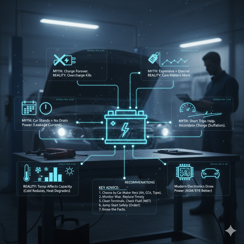 Мир автомобильных аккумуляторов окружен множеством мифов и заблуждений, которые могут привести к неправильной эксплуатации, сокращению срока службы батареи и даже к ненужным расходам. Развеем некоторые из них, чтобы вы могли принимать более обоснованные решения относительно "сердца" вашего автомобиля.
