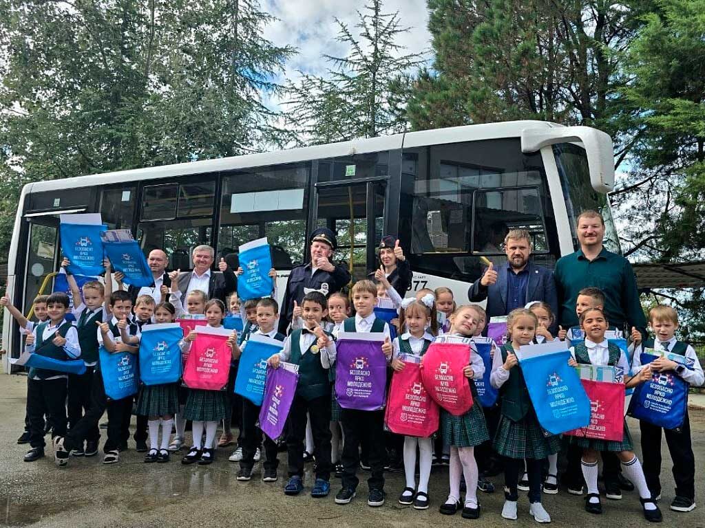 На территорию школы привезли автобус, в салоне которого юные сочинцы наглядно изучили правила поведения в общественном транспорте и повторили ПДД. В завершении мероприятия детям вручили полезные подарки – школьное расписание и фирменные сувениры Национальной транспортной ассоциации.