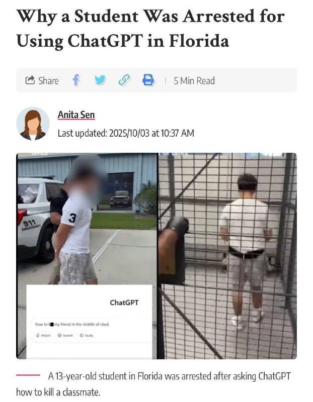 Во Флориде 13-летнего школьника приняли прямо в классе — и всё из-за промта в ChatGPT