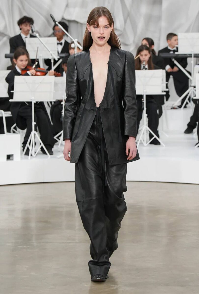 Рассматриваем первую ready-to-wear коллекцию Гленна Мартенса для Maison Margiela. Новый креативный директор продолжает работать в парадигме, которую обозначил еще при подготовке кутюрной коллекции: он собирается вернуть бренду все, что придумал Мартин Маржела. На прошедшем показе это чувствовалось во всем. Дефиле он превратил в перформанс, за музыкальное сопровождение отвечал детский оркестр. На лица моделей был нанесен грим, превративший их рты в узнаваемые пустые бирки Maison Margiela. В коллекции Мартенс использовал самые узнаваемые приемы основателя бренда. Например, луки скотч, которым часто пользовался Маржела, многие вещи были выполнение в технике апсайкл (именно Мартина считают одним из пионеров этого направления в моде). Легко отследить и актуальные тренды: на подиуме появились облегающие косухи, изделия в бельевом стиле, шаровары, которые станут хитом следующей весны. Grazia