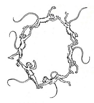 Впоследствии, версия со змей, хватающей собственный хвост, была публично обыграна рисунком, где шесть обезьянок, расположились правильным шестиугольником и каждая держалась, ухватившись за ноги соседа. Две ноги и две руки обезьянки напоминали о четырехвалентности углерода.