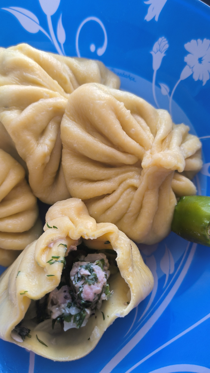 А даже проще , чем пельмени. Там нужно маленькие лепешечки катать, каждый пельмешек, а хинкалька-то крупненькая . Фарш тот же, но с добавлением всех трав, что есть в огороде: укроп, базилик, кинза, лука добавить и бульончика. Лепешка см 15 в диаметре и тоненькая. Форма у меня никак не получилась, чтобы как настоящая. Смешно смотреть, как они варятся. Хвостиком вниз их положила в кипящий бульон, через какое-то время они надулись и плавали как мячики. Должна сказать вам, что очень вкусно получилось у меня. Очень рекомендую готовить к праздничному столу!!!