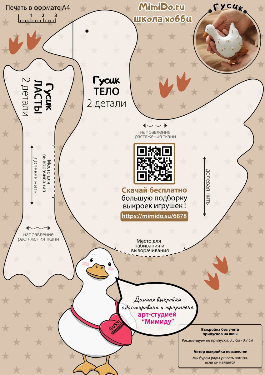 Выкройка Гуся Пополните свою коллекцию — забирайте PDF-справочник с выкройками 👉 vk.cc/cL35qk бесплатно! 🎀 Внутри вас ждут: ✔️ выкройки и мастер-классы ✔️ полезные ссылки и материалы ✔️ вдохновение на каждый день! ⏳ Только три дня доступа — не откладывайте! ♻️ Все выкройки собраны из открытых источников. Мы делимся ими для вашего вдохновения и творческого старта — адаптируйте под свои проекты, дополняйте и создавайте уникальные изделия!