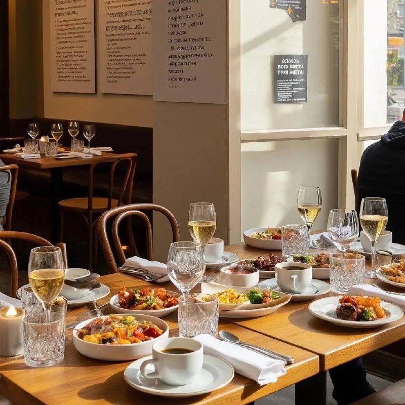 Представь себе утро в ресторане SVOY, где верхний свет спускается в просторный зал и переливается в бокалах с игристым, где горячим кофе и завтрак уже ждут...