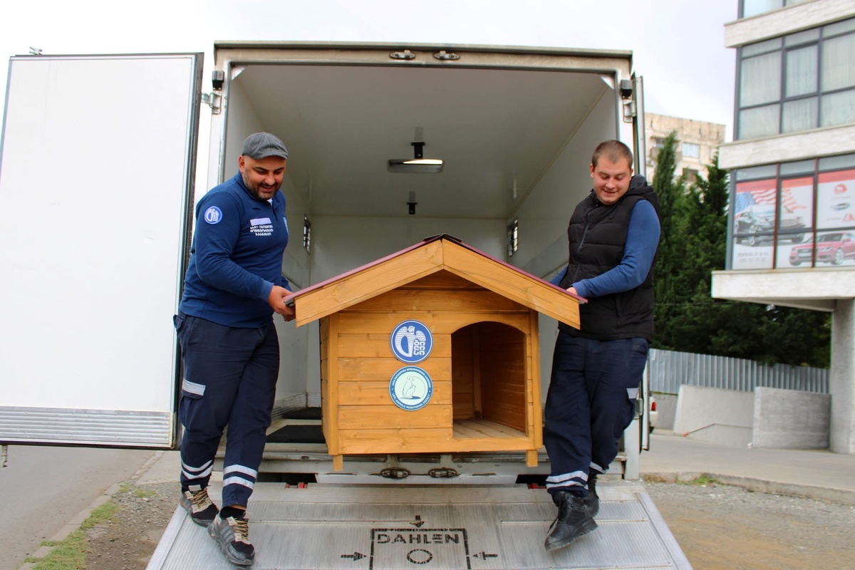 В Тбилиси установили дополнительные деревянные будки для бездомных собак