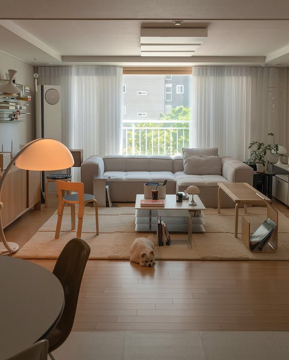 Сегодня рассматриваем квартиру молодого холостяка из Южной Кореи. Хозяин дизайнер интерьеров и декоратор, живет с собачкой. Монохромный интерьер, но выглядит в целом, не так уж и скучно, я бы даже сказала спокойно. База многоуровневый потолок, белые стены. Что нравится: ▪️Подборка мебели: стол с стеллаж в гостиной выглядит очень стильно, и больно. Острый угол стола вызывает у меня ментальную боль. ▪️Организация рабочего места – очень грамотно спроектирован кабинет. Очень нравится, когда для рабочего место используют направляющие, чтобы менять высоту и количество полок. ▪️Сочетание белого, хрома и очень светлого дерева создает приятное легкое настроение. ▪️Белые жалюзи с черной полосой – выглядят свежо и стильно. Что не нравится: ▪️Кухня очень стерильная особенно при дневном свете. ▪️Напольные покрытия – максимально странные. В гостиной как будто очень бюджетный ламинат, а на кухне линолиум? В целом, если учесть что живет холостяк ( а у них там совсем с браками сложно), то квартира впол