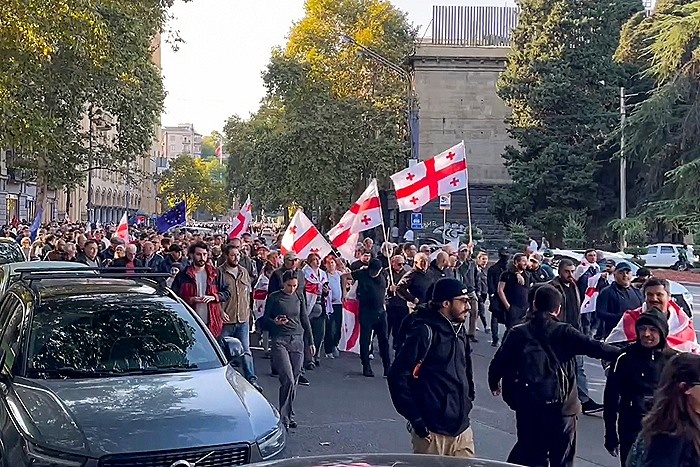 Митинг оппозиции, проходящий в Тбилиси в день муниципальных выборов, начался с опозданием на три часа - по заявлению организаторов, ждали сторонников из грузинских регионов.