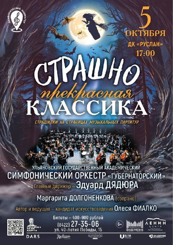 "Страшно прекрасная классика" теперь в Новом городе 🗓️ 5 октября в 17:00 📍ДК «Руслан» В программе прозвучат три версии шабаша нечистых сил, созданные Эдвардом Григом, Гектором Берлиозом и Модестом Мусоргским. Мы сравним подходы трёх композиторов и проголосуем, кто из них достоин приза за лучшее воплощение картины слёта нечисти. Другая линия концерта будет посвящена мистическим женским образам. Валькирии Рихарда Вагнера и Баба-Яга Мусоргского дадут повод поговорить о претворении темы полёта в музыке, а ария Русалки Антонина Дворжака без оговорок будет удостоена титула «Страшно прекрасная классика» – за удивительную красоту мелодии и красочность оркестровки. Концерт станет первым в новом цикле «Симфонический навигатор», в котором музыковед даёт слушателям ориентиры для вдумчивого слушания и понимания музыкальных произведений и ведёт их в мир симфонической классики подобно голосу из автомобильного навигатора. Билеты 🎟️ Скидка 10% по промокоду культура 💝 #5октября25@culturnik