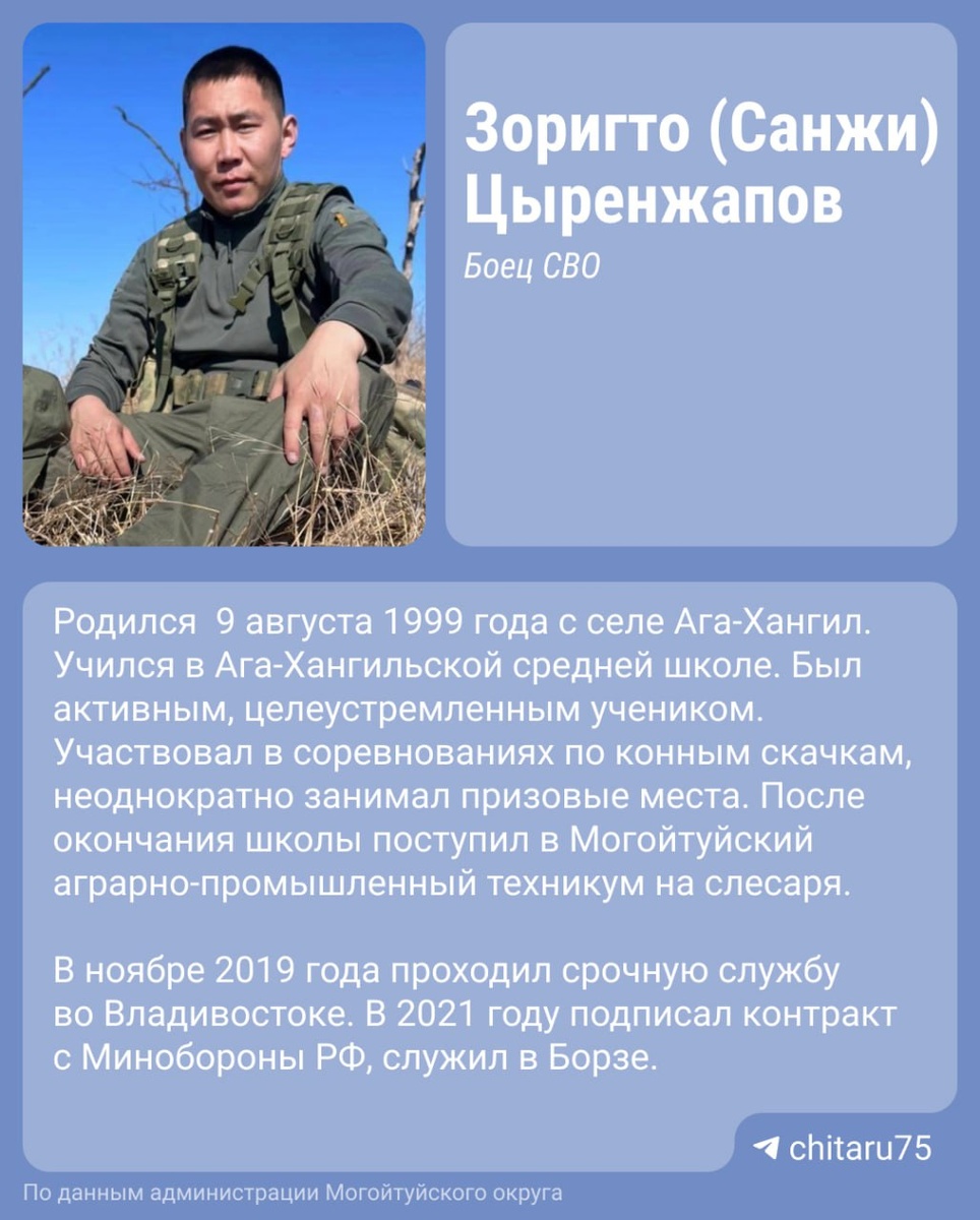 Пожарный из Забайкалья погиб на спецоперации. Зоригто Цыренжапов с первых дней был «за ленточкой», но в 2022 году прервал контракт. С весны 2023 года до февраля 2024-го был пожарным. В ноябре 2024 года снова заключил контракт с Минобороны и уехал на СВО. Погиб в Запорожской области в июле этого года. У парня остались жена и двое детей. 🟦 «Чита.Ру» в МАХ даже без интернета
