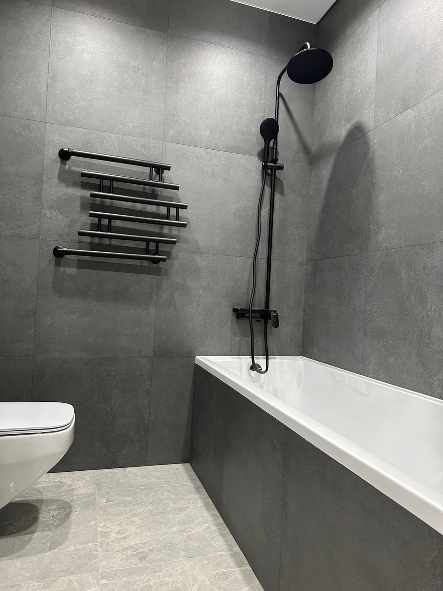 Когда всё вокруг светло-нейтральное — белые стены, серая плитка, минимализм — взгляд “не знает куда идти”. Цветной акцент становится “якорем”, который фокусирует внимание. В свежих трендах дизайна плитки показывают, как глубокие изумрудные, терракотовые или морские оттенки делают ванную “дороже” и выразительнее Вертикально или горизонтально — тонкая контрастная полоса привлекает взгляд и “разделяет” зону: Сделайте одну стену акцентной: вставьте плитку насыщенного цвета или с узором — и все остальные стены будут “отступать визуально”. Например, горизонтальная полоса цвета внизу стены, переходящая в поддон — такой “ребро” усиливает ощущение глубины. Не нужно заполнять весь объём: пара цветных квадратов, мозаика в одном углу, декоративная панель — и акцент уже “в деле”. Если пол ванны (там, где не скользко) выполнить плиткой тёплого или интересного оттенка — это поднимет уровень дизайна и пригласит в пространство. Цвет меняется от стены к стене или от пола к потолку — мягкий переход, но