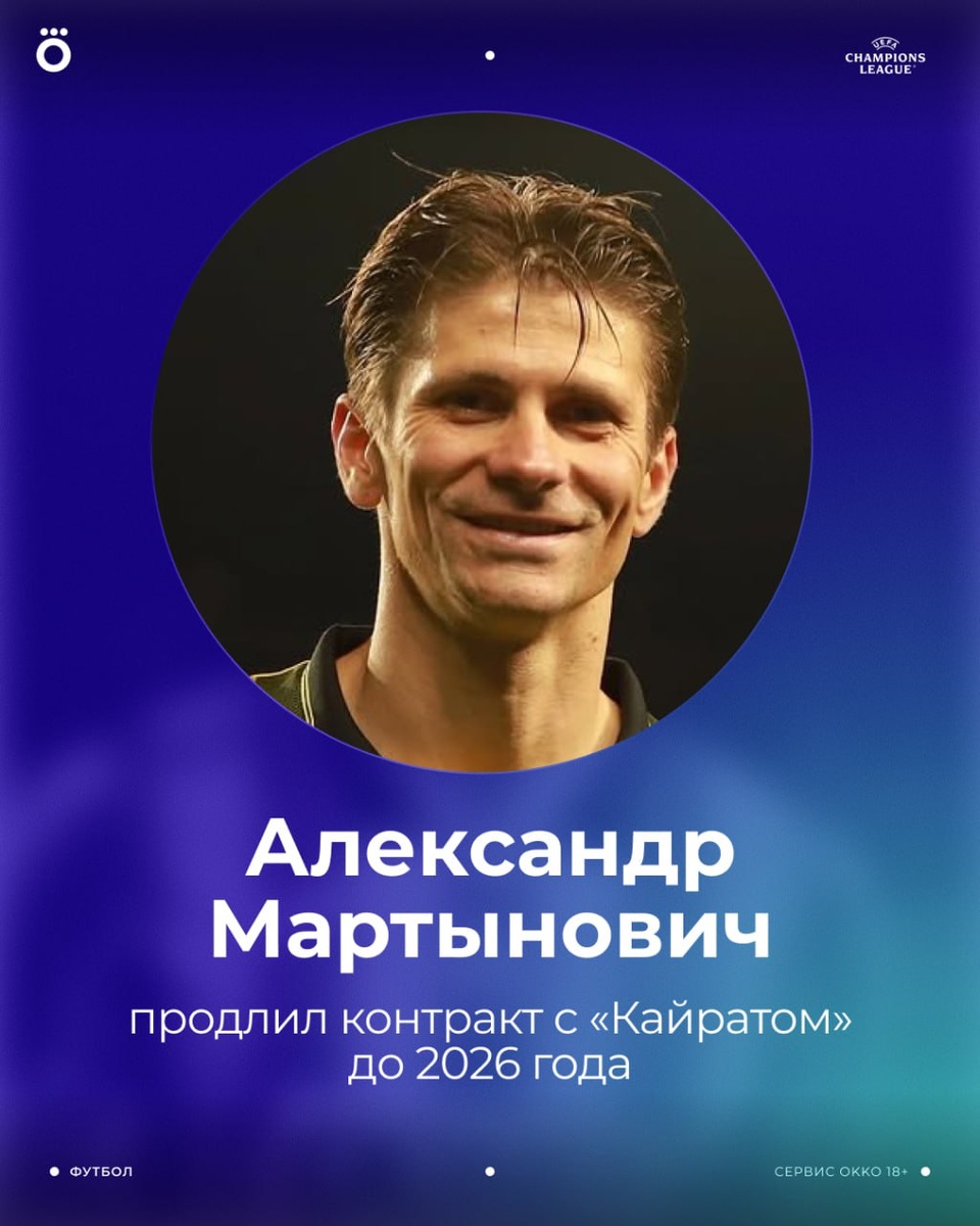 Новое соглашение «Кайрата» с Мартыновичем рассчитано до конца 2026 года и предусматривает опцию продления еще на сезон 🙌🏻 Легендарный белорус по-прежнему будет цементировать оборону казахского клуба 🧱