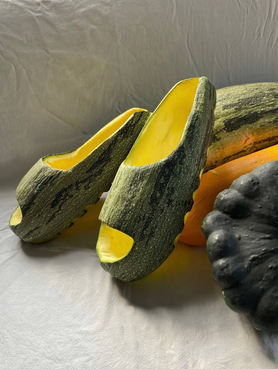 Где же ты была, Катя Шукшина? Всего месяц-другой назад, когда дачники стонали от урожая кабачков и цукини, затея художницы Шукшиной делать из этих овощей вряд ли функциональную, зато забавную обувь, которую потом можно нарезать на рагу, пришлась бы нам очень кстати. Не будем грустить, запомним на будущее. @foodiscovery