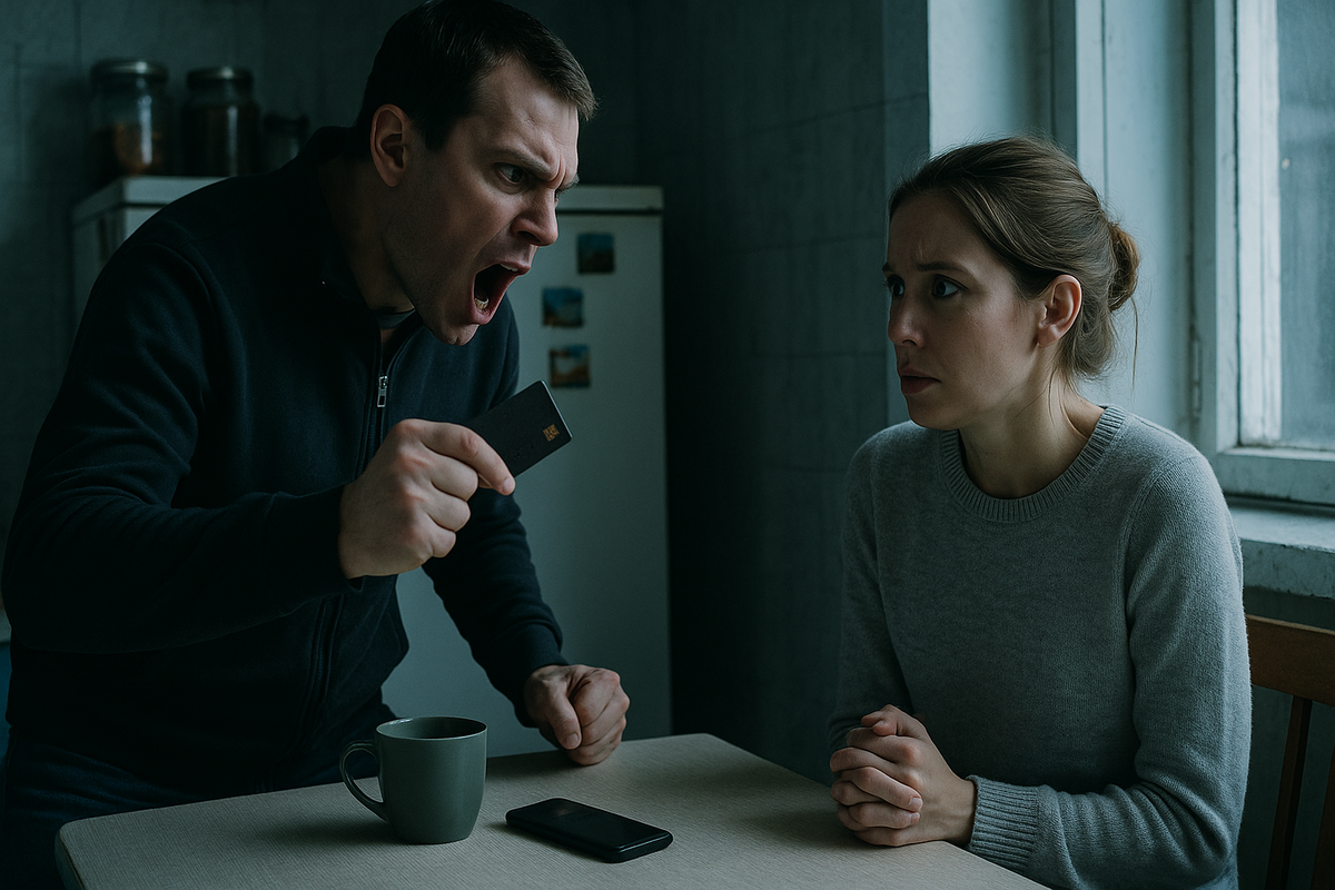 Олег стоял посреди комнаты, руки скрещены на груди, лицо красное. Муж размахивал пластиковой картой и кричал: