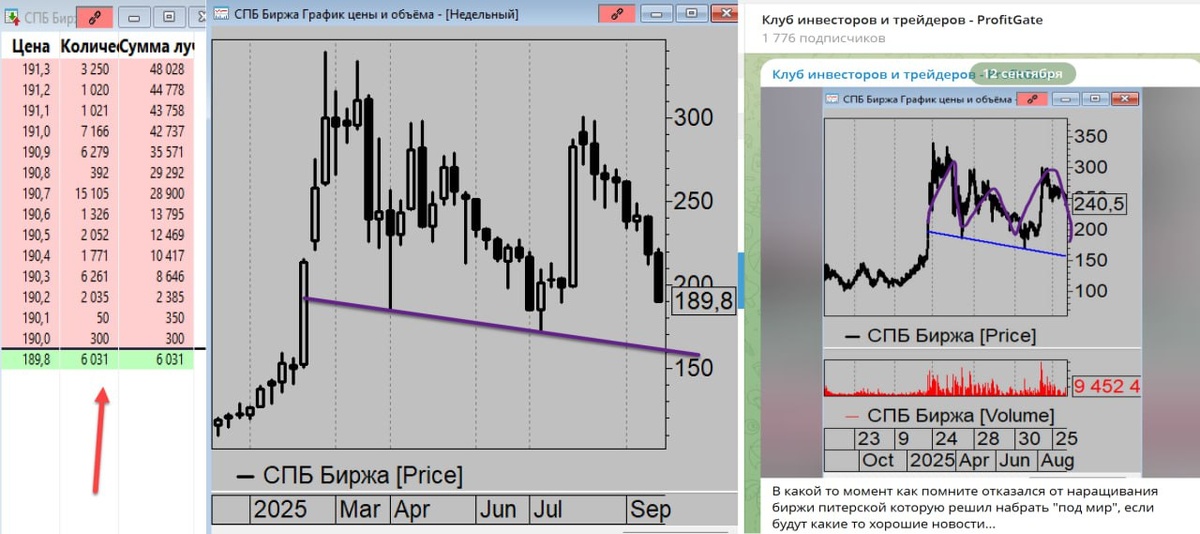 Биржа СБП... В еженедельном обзоре есть её скрин и кто-то обязательно напишет заметив там соответствующий паттерн. Мы его заметили уже давно. И сначала я не стал докупать биржу, когда рынок ещё был намного намного выше, а потом скинул её... Справа тут срин из клуба ещё от 12 сентября. Тогда не верилось в такой завал :) Сегодня в бумажке пустые стаканы... В общем про паттерны в личку можете не писать и не только про биржу. Всё и так видели :) Обзор обрабатывается через час-два выложу...