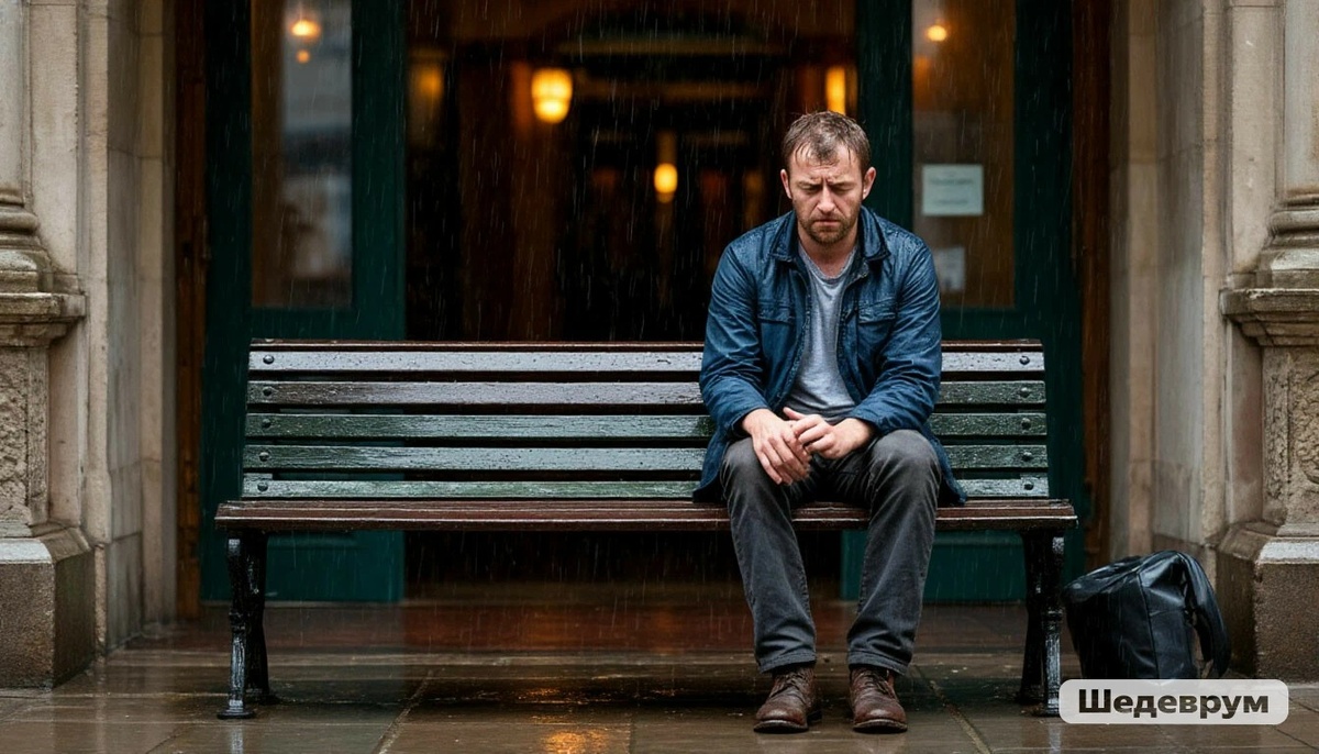 Он сидел на старой деревянной лавочке во дворе, промокший до нитки, с лицом, искажённым усталостью и болью. Его пальцы впивались в край скамьи, будто боялись, что земля вот-вот уйдёт из-под ног. Вокруг — серый октябрьский вечер, моросящий дождь, тусклый свет фонарей, отражающийся в лужах. Всё вокруг дышало унынием и забвением.