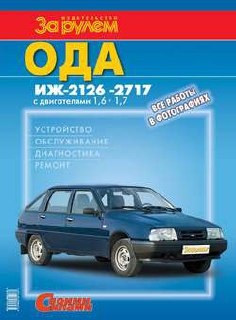 Ода Иж-2126, -2717 с двигателями 1,6; 1,7. Устройство, обслуживание, диагностика, ремонт. Иллюстрированное руководство Книга из серии полноцветных иллюстрированных руководств по ремонту автомобилей своими силами. В руководстве приведены особенности конструкции узлов и систем автомобилей «Ода» Иж-2126, -2717, включая двигатели ВАЗ-2106 и УМПО-331. Подробно описаны основные неисправности, их причины и способы устранения. Процессы разборки и ремонта проиллюстрированы и снабжены комментариями.В Приложениях представлены инструменты, смазочные материалы и эксплуатационные жидкости, манжетные уплотнения, подшипники, моменты затяжки резьбовых соединений, а также схема электрооборудования автомобиля.Книга предназначена для водителей, желающих ремонтировать автомобиль самостоятельно, а также для работников СТО. Скачать: https://www.litres.ru/book/raznoe-4340152/oda-izh-2126-2717-s-dvigatelyami-1-6-1-7-ustroystvo-obsluzh-3945635/?lfrom=477110899