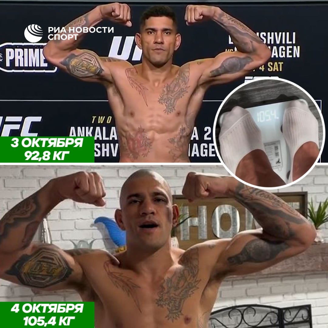 Алекс Перейра уложился в категорию до 93 кг на взвешивании перед боем с Магомедом Анкалаевым. Но уже через день весы показали 105,4 кг. Это значит, что за короткий промежуток времени спортсмен смог набрать больше 12 кг. Конечно, это может быть связано с особенностями подготовки к бою, но всё равно вызывает удивление и вопросы.