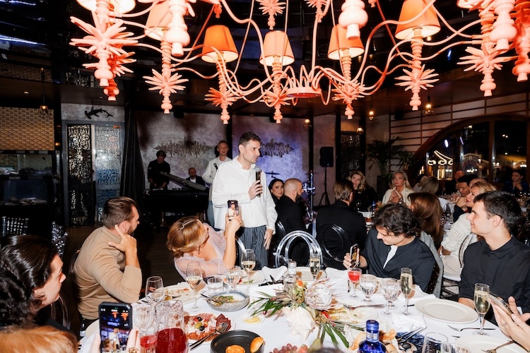 В Москве, в ресторане Peshi, продюсер Артем Сорокин собрал своих друзей для празднования своего 47-летия. На протяжении многих лет основатель премий Fashion People Awards и Brand Awards отмечает свой день рождения в кругу близких — спустя месяц после фактической даты. Впрочем, никого такая мелочь ничуть не смущает, поэтому на торжествах всегда полно звездных гостей. В этом году поздравить продюсера пришли певица Слава, Юлия Барановская, Анна Семенович, Катя Лель, Олеся Судзиловская, Игорь Скрипко, Ида Досман, Светлана Ермолова, Эмма Салимова, Ольга Власенко, Татьяна Терешина, Игорь Гуляев, Александр Сирадекиан, Александр Арутюнов, Гога Никабадзе, Илья Шиян, Юрий Столяров, Иван Николаев, Дмитрий Носов, Оксана Романенко и многие другие. Ресторан Peshi, рекомендованный Michelin, подготовил для гостей лучшие угощения: в welcome-зоне гостей радовали черной икрой и уникальными сырами. Но все-таки самое интересное происходило на сцене, где микрофон переходил от одного гостя к другому. Певица