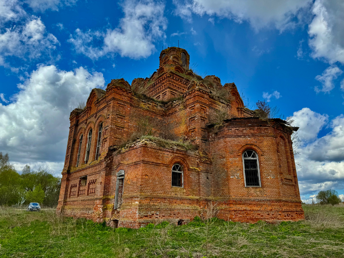 Село Жеремино в Суворовском районе Тульской области сегодня почти не видно с трассы. Несколько домов, старый пруд, поле, заросшая дорога. Но все еще стоит храм Рождества Богородицы, выстоявший больше века без колоколов и службы. Первая церковь здесь была деревянной, построенной в 1746 году. Каменный храм возвели на её месте в конце XIX века. По архивным данным — между 1899 и 1909 годами, по проекту архитектора Василия Косякова. Имя неожиданное для провинции: именно он спроектировал Кронштадтский морской собор и несколько крупных храмов Петербурга. Почему его проект оказался в тульском селе — вопрос открытый, но черты узнаваемы: монументальность, внимание к симметрии, русский стиль с элементами неовизантики. Храм стоял на пригорке, виден был издалека. У него была колокольня и ограда, вокруг — сельское кладбище. После революции службы прекратились, священника арестовали, колокола сняли. В 1930-х храм закрыли, помещение использовали под склад, потом просто оставили. Главное здание