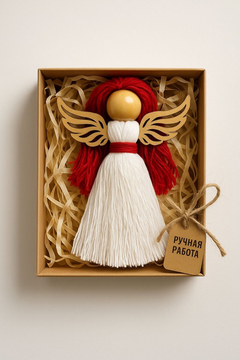 Каждого ангела я аккуратно укладываю в коробку, перевязываю джутовой нитью, добавляю бирочку "ручная работа". Открываешь - и внутри уже готовый подарок 🎁