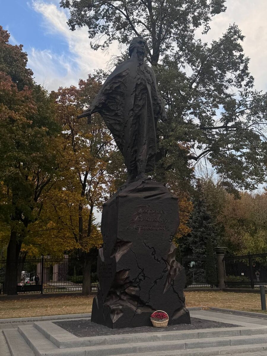 При входе в парк Останкино, рядом с усадьбой, стоит памятник Гавриилу Романовичу Державину (1743-1816). Он был личным помощником императрицы Екатерины I! и первым министром юстиции Российской империи при императоре Александре I. Открыли памятник в 2024 г. Скульптур Николай Жуков. Композиция состоит из двух ключевых частей: фигуры самого Державина и массивного постамента, обладающего собственной символикой. Основание памятника выполнено в виде руин, которые как бы проступают из самого постамента. На каменном постаменте нанесены строки из знаменитых од Державина: «На взятие Измаила», «Признание» и «Памятник». Место для установки памятника выбрано неслучайно: Державин часто бывал в усадьбе графа Шереметьева. Сейчас после реставрации открылся Египетский павильон усадьбы, о нем расскажу подробно в следующем посте.